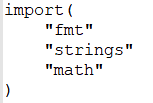 import 문으로 가져올 수 있는 패키지는 fmt 뿐만 아니라, strings, math 등이 있습니다.